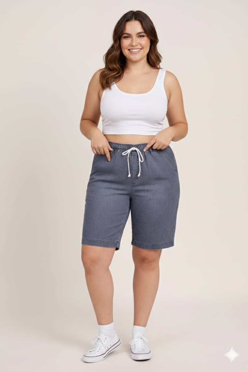 A Bermuda Plus Size Jeans é perfeita para compor looks despojados o look moderninho. Combina com tudo, é confortável !